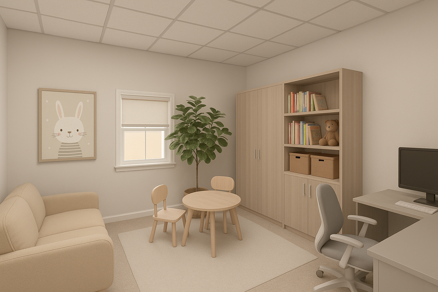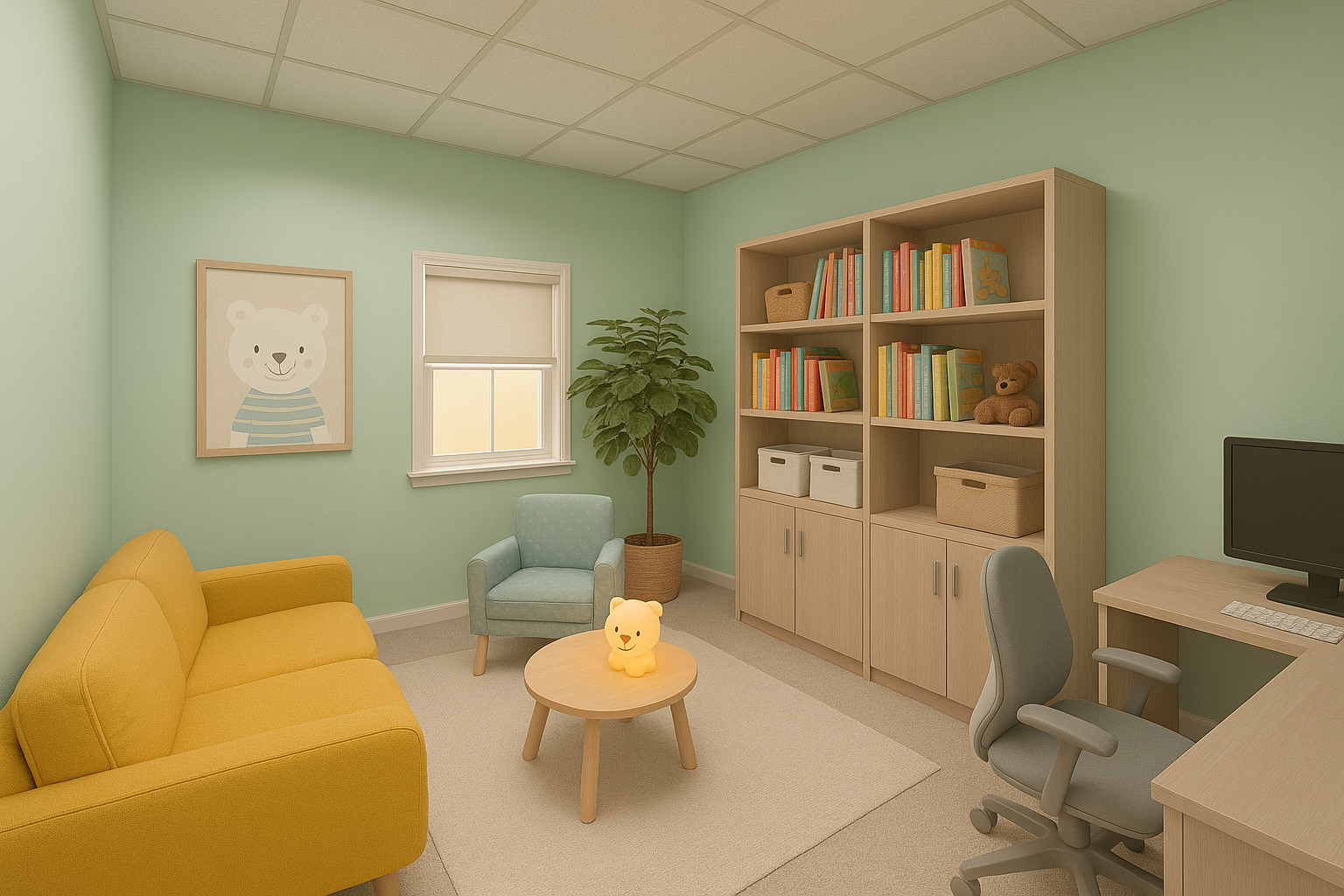 Designed with input from our mental health professionals, these rooms will be warm, comfortable, and private, providing a calm space where children can open up at their own pace. They will be equipped with soft lighting, welcoming décor, and evidence-based tools for trauma recovery, art therapy, and play therapy.